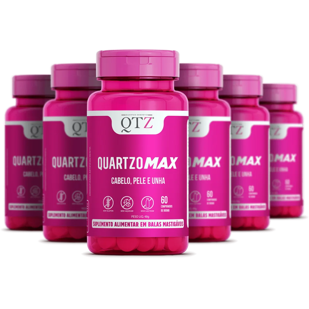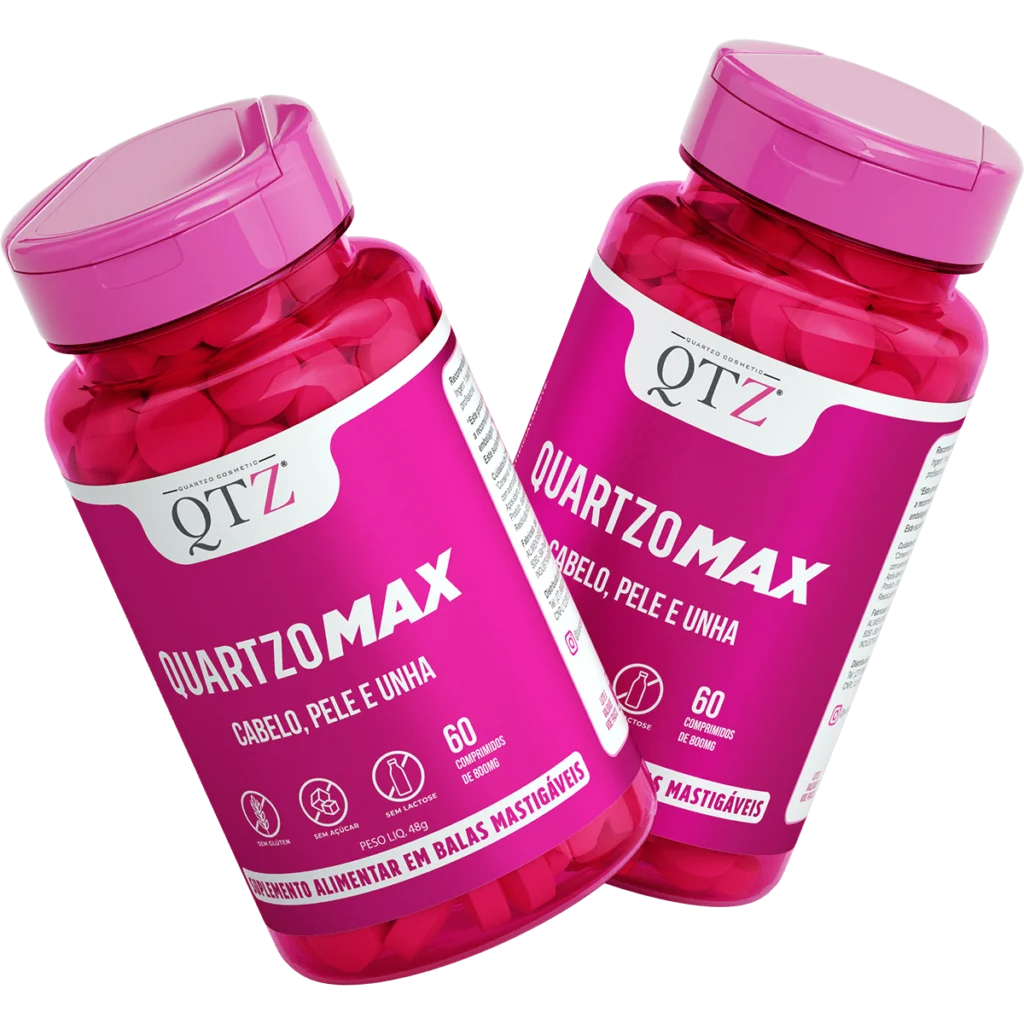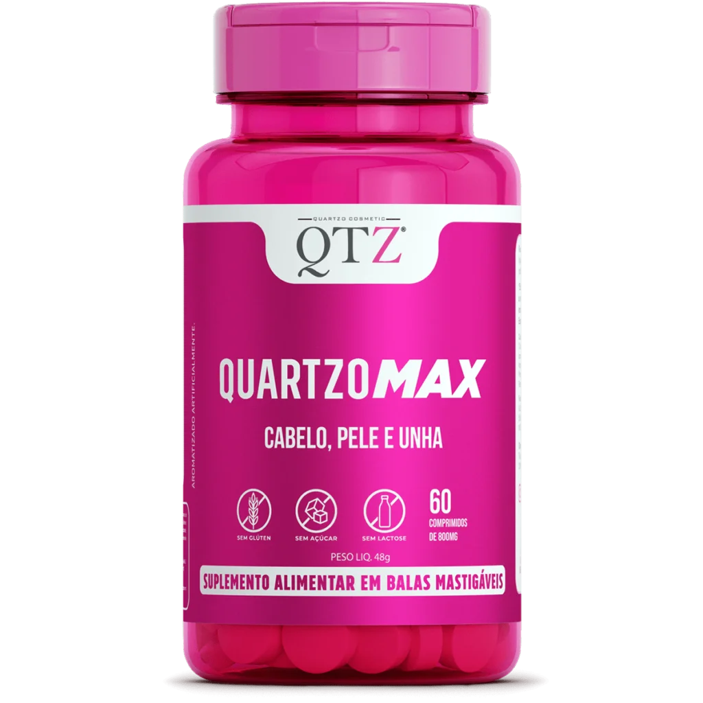 QuartzoMax é a combinação perfeita de Vitamina C, Tiamina, Riboflavina, Niacina, Vitamina B6, Biotina, Ácido Fólico, Ácido Pantotênico, Vitamina B12 e Zinco. Promova a saúde e beleza dos seus cabelos, unhas e pele com nutrientes essenciais em cada bala mastigável. Com QuartzoMax, nutra seus cabelos, unhas e pele de dentro para fora. Uma fórmula rica em vitaminas essenciais para resultados incríveis!