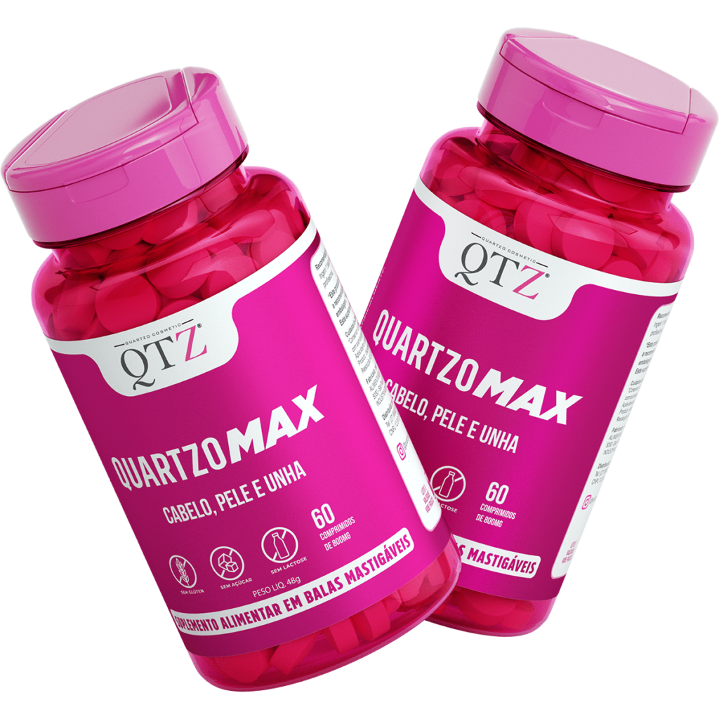 QuartzoMax é a combinação perfeita de Vitamina C, Tiamina, Riboflavina, Niacina, Vitamina B6, Biotina, Ácido Fólico, Ácido Pantotênico, Vitamina B12 e Zinco. Promova a saúde e beleza dos seus cabelos, unhas e pele com nutrientes essenciais em cada bala mastigável. Com QuartzoMax, nutra seus cabelos, unhas e pele de dentro para fora. Uma fórmula rica em vitaminas essenciais para resultados incríveis!